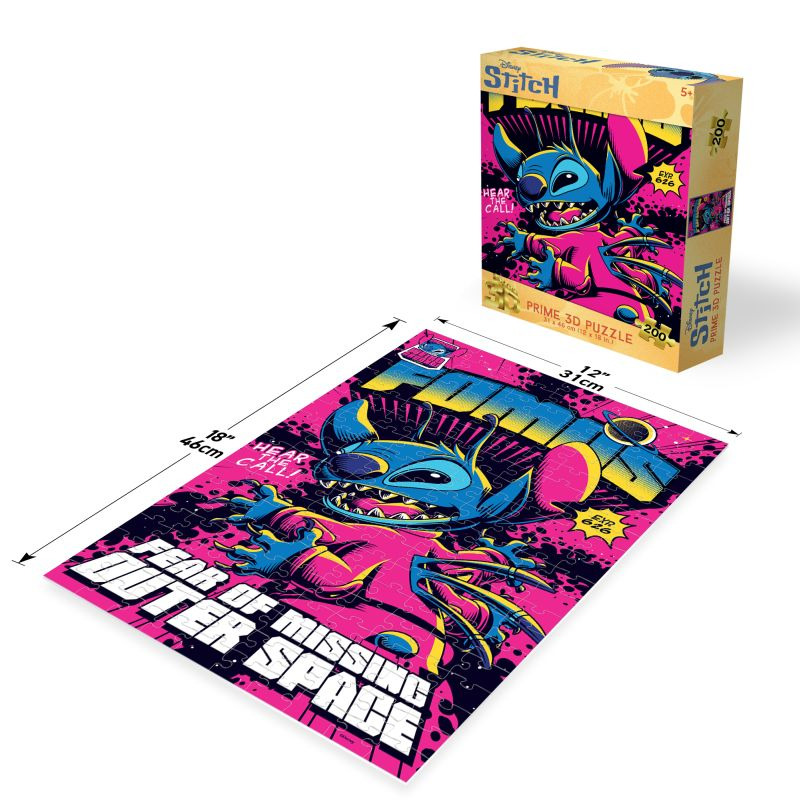 Pridruži se nezaboravnoj avanturi sa najneobičnijim Diznijevim junakom – Stitch-om! Ovaj Prime 3D puzzle sa 200 delova donosi upečatljiv i dinamičan dizajn u pop-art stilu, gde Stitch dolazi u punom sjaju, spreman za svemirske nestašluke.