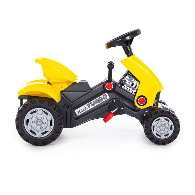 Traktor je dizajniran u veselom žutom tonu, što ga čini atraktivnim i primamljivim za mališane. Sedište je udobno, kako bi se deca osećala komforno tokom vožnje. Deca će biti oduševljena time što mogu da upravljaju traktorom pomoću pedala i volana, čime razvijaju koordinaciju. Dimenzije:78x44x54 cm